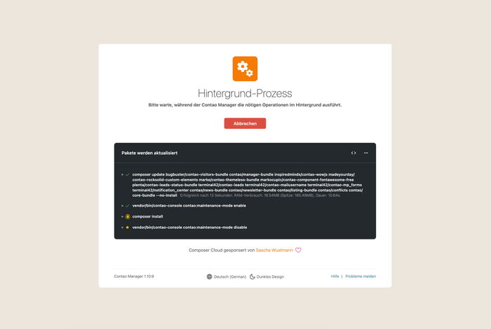 - Core-Update & Erweiterungen: Nicht nur das Hauptsystem, sondern auch alle installierten Plugins und Bundles werden auf den neuesten Stand gebracht.